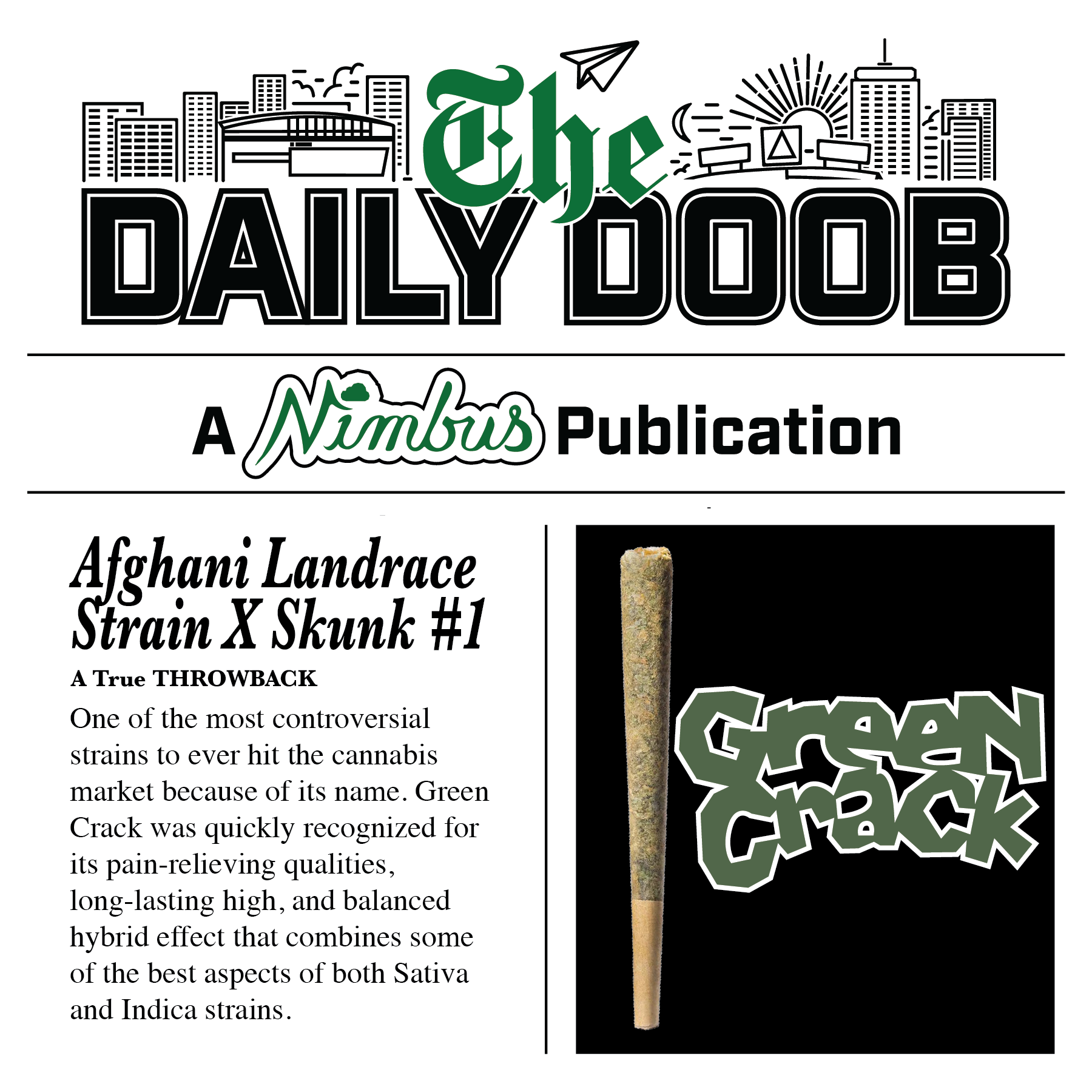 Historical Context: One of the most controversial strains to ever hit the cannabis market because of its name. Green Crack was quickly recognized because of its pain-relieving qualities, long-lasting high, and a balanced hybrid effect that brings together some of the best effects of both Sativa and Indica strains.