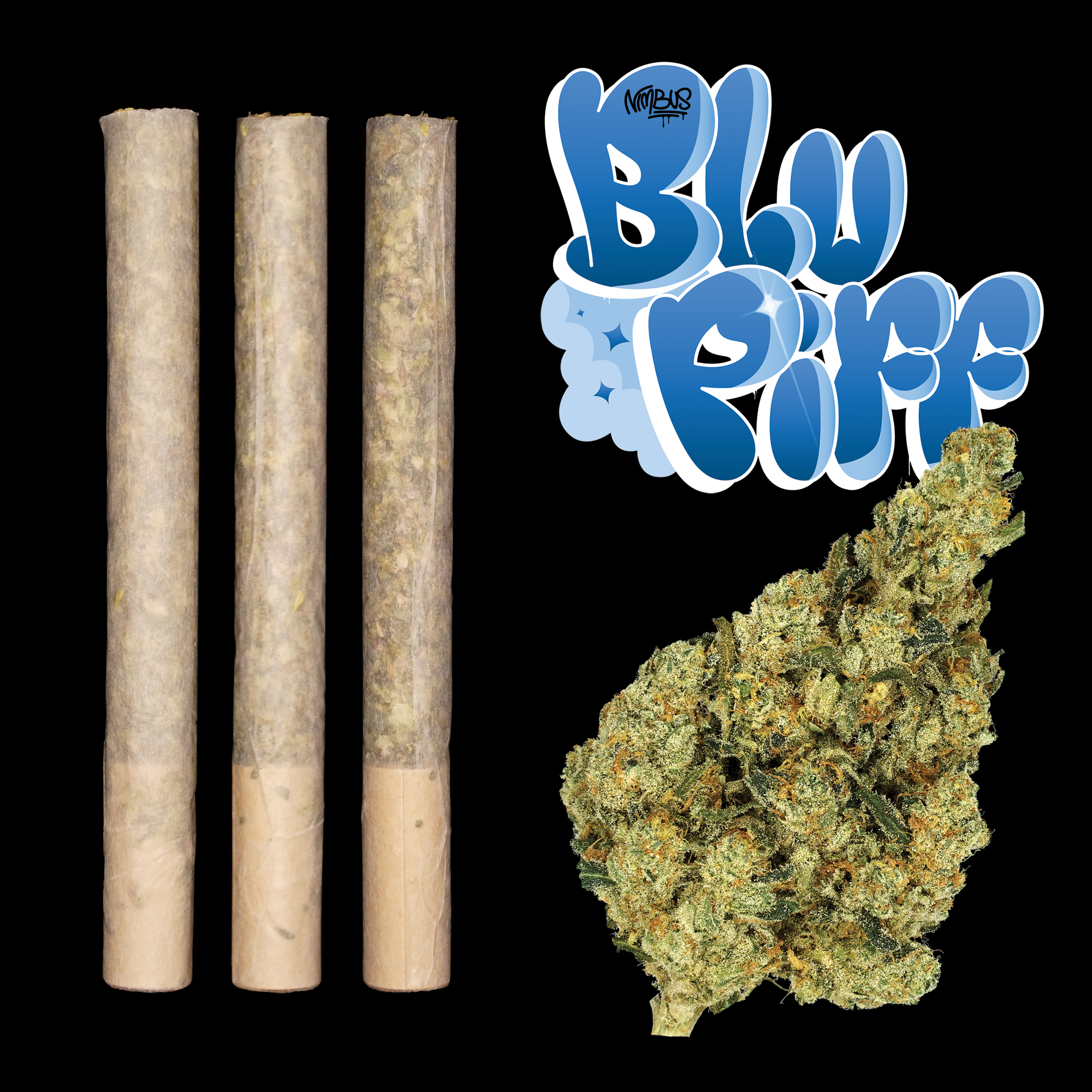 Blu Lemonade Piff is the offspring of two strains important to the Nimbus story. It is the cross of 91 Lemons—the offspring between the legendary Chem 91 --- by Chem Dog and Lemon Tree and Blu Piff (Blue Dream x an old-school NYC Piff). In this new strain, the parent genetics collide, creating an up-and-soaring high with a terpene profile that tastes like blue lemonade.