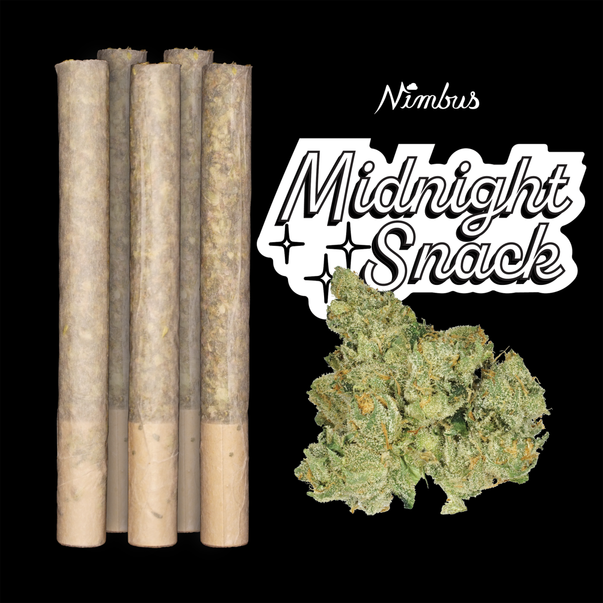 Indica-Leaning HybridBreeder: Nimbus Cannabis Co.Midnight Snack is a Nimbus Cannabis Co. special. The seed was first cracked by our head grower's dad, The Green Meatball, in his backyard in the 2010s. Midnight Snack strain is excellent for Animal Cookies smokers with the same sweet and sour taste, but with the sturdy bud structure of Blue Dream.