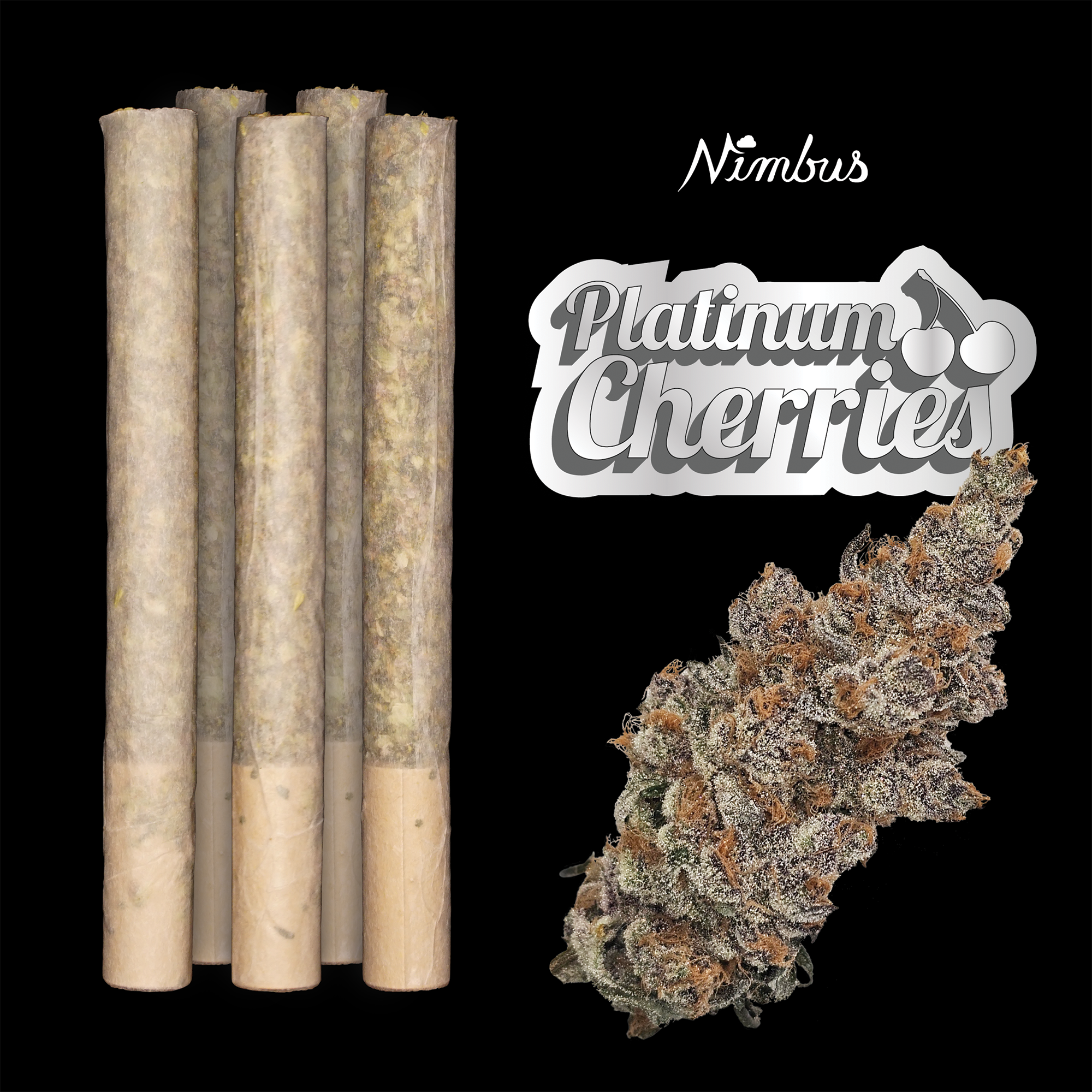 Platinum Cherries is a new strain on the rise, first broken in the underground market. Our head grower was given the seeds at an event and cracked them in Nimbus Test Grow. What came out was the Platinum crossed with Super Boof. It possesses a vibrant, gassy cherry flavor — this is the only Platinum Cherry of its kind.